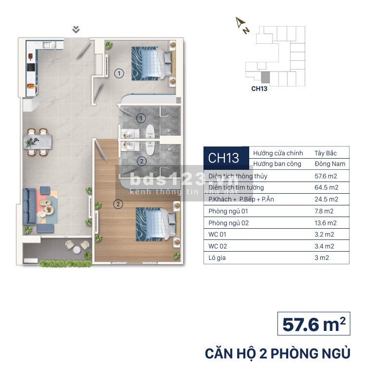 Số phòng ngủ | 2 phòng |