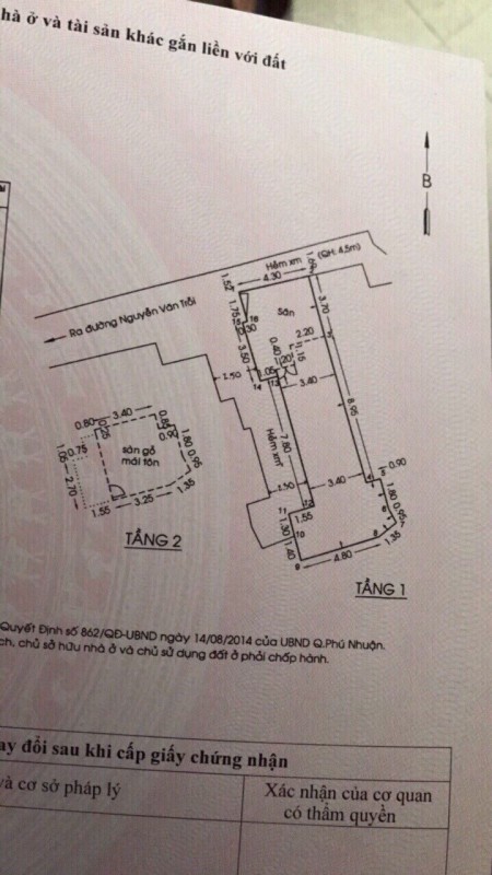 DT: 4.3m x 15.4m , NH 6.15m. DTCN: 64.9m2 , hướng: Tây Bắc.