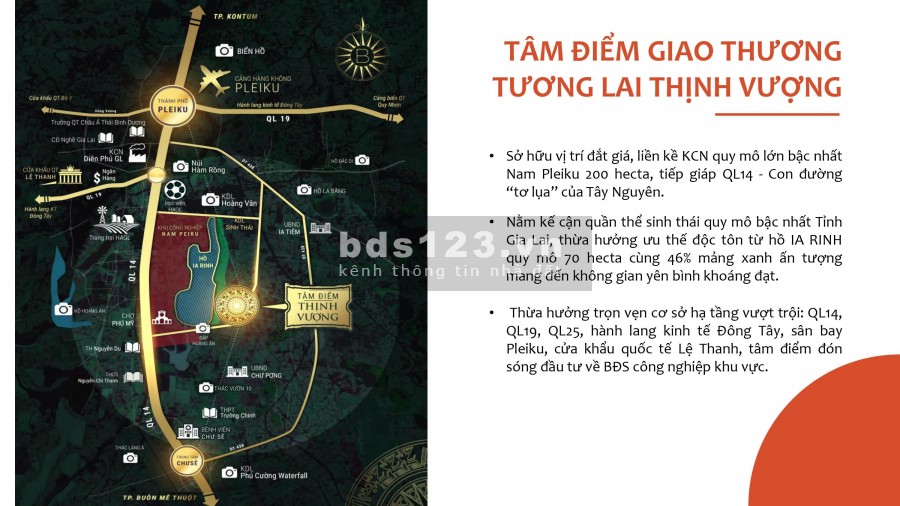 Ví Trí VÀNG : Tâm điểm kết nối phía Nam Pleiku. Liền kề QL14 huyết mạch, hành lang kinh tế Đông Tây QL19 và đường QH 25m, 60m. Kết nối thẳng tới KCN lớn nhất Tây Nguyên Nam Pleiku 200ha. Biệt thự vườn Nam Pleiku sở hữu không gian xanh thoáng mát kề bên Hồ Sinh Thái Ia Ring.