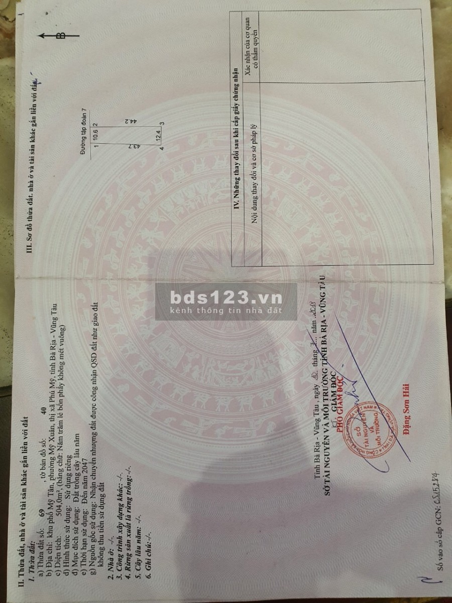 Đất Phú Mỹ sang lô tách nền có sổ hồng gần Bà Rịa