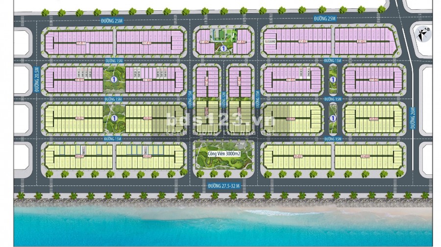- Hạ tầng: Hệ thống điện, cấp thoát nước ngầm, hệ thống thông tin liên lạc, vỉa hè rộng thoáng, đường nội bộ rộng 15m , 27.5m.